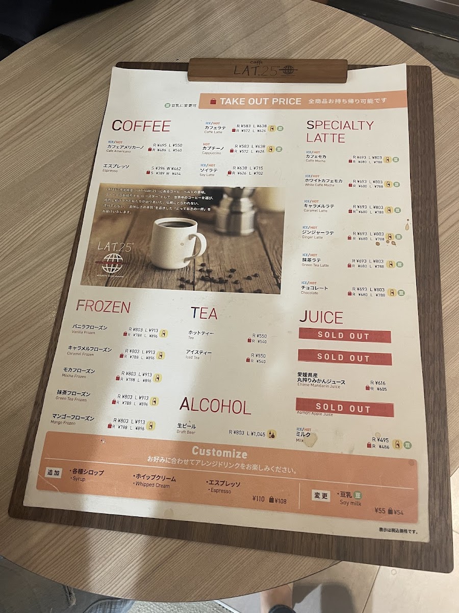 Caffe LAT.25° Menu